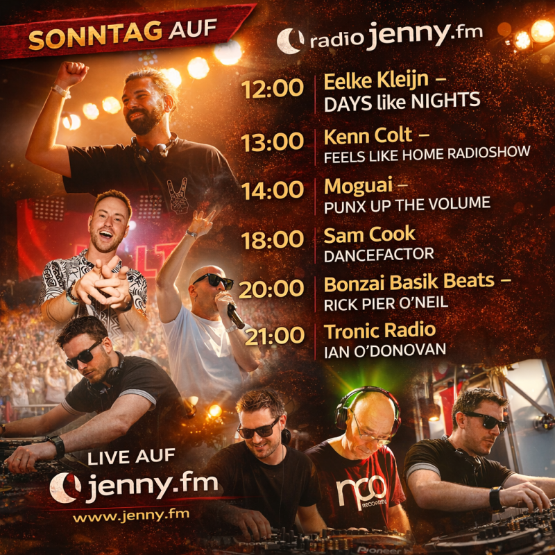 Dieser abwechslungsreiche Radio Show Sonntag auf jenny.fm verbindet bekannte Namen der elektronischen Szene mit hochwertigen Sets und sorgt für den perfekten Soundtrack – egal ob entspannt oder energiegeladen.