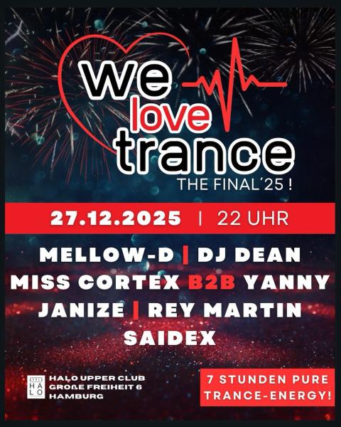 Am Samstag, den 27. Dezember 2025, wird Hamburg erneut zum Herzen der deutschen Trance-Szene: WE LOVE TRANCE – The Final ’25 steht vor der Tür und verspricht eine Nacht voller Emotion, Energie und echter Trance-Family-Atmosphäre.