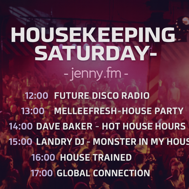 Diesen Samstag ab 12:00 Uhr heißt es wieder: Housekeeping Saturday auf jenny.fm! Freu dich auf sechs Stunden voller energiegeladener Beats und feinster House-Sounds von internationalen DJs und Szenegrößen.