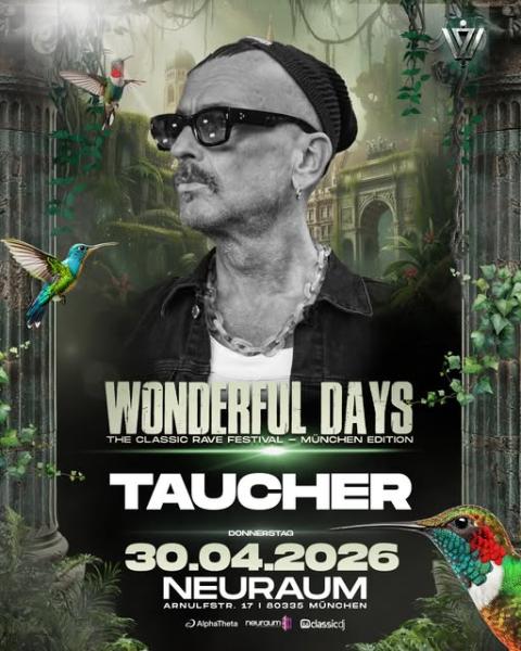 Am Donnerstag, den 30.04.2026, erwartet dich in München ein echtes Highlight der elektronischen Musikszene: Wonderful Days präsentiert mit Taucher eine Ikone der 90er-Trance-Ära live im Neuraum