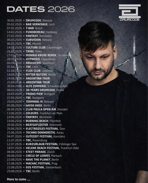 Neben den Tourdates stehen auch neue Releases auf dem Programm. Damit verspricht 2026 ein weiteres intensives Jahr zwischen Studio, Clubs und Festivals zu werden – mit treibendem Techno und langen Nächten auf den Dancefloors.