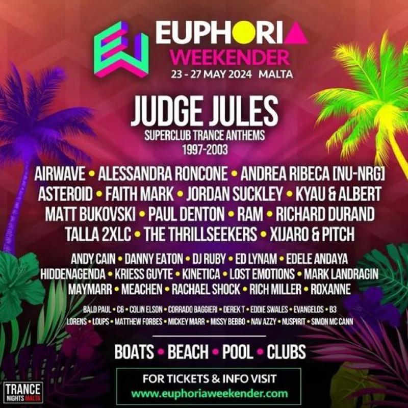 Frühling auf Malta! Was will man mehr? Da gibts mehr Boote, Strance, Pool und Clubs - und geile Musik beim Euphoria Weekender 2024 vom 23. Mai bis 25.Mai. Mehr Infos unter www.euphoriaweekender.com